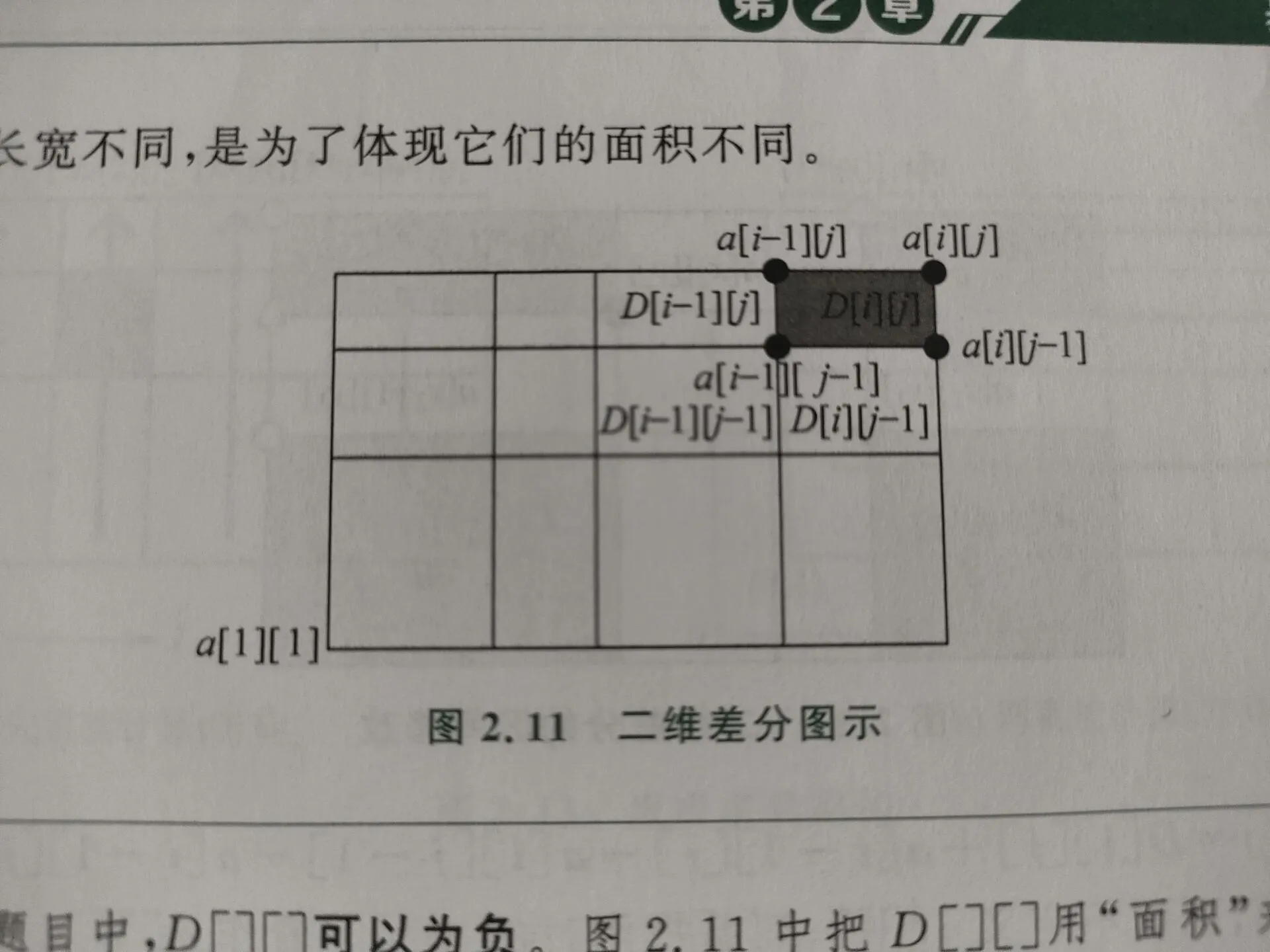 D[i][j]=a[i][j]-a[i-1][j]-a[i][j-1]+a[i-1][j-1]